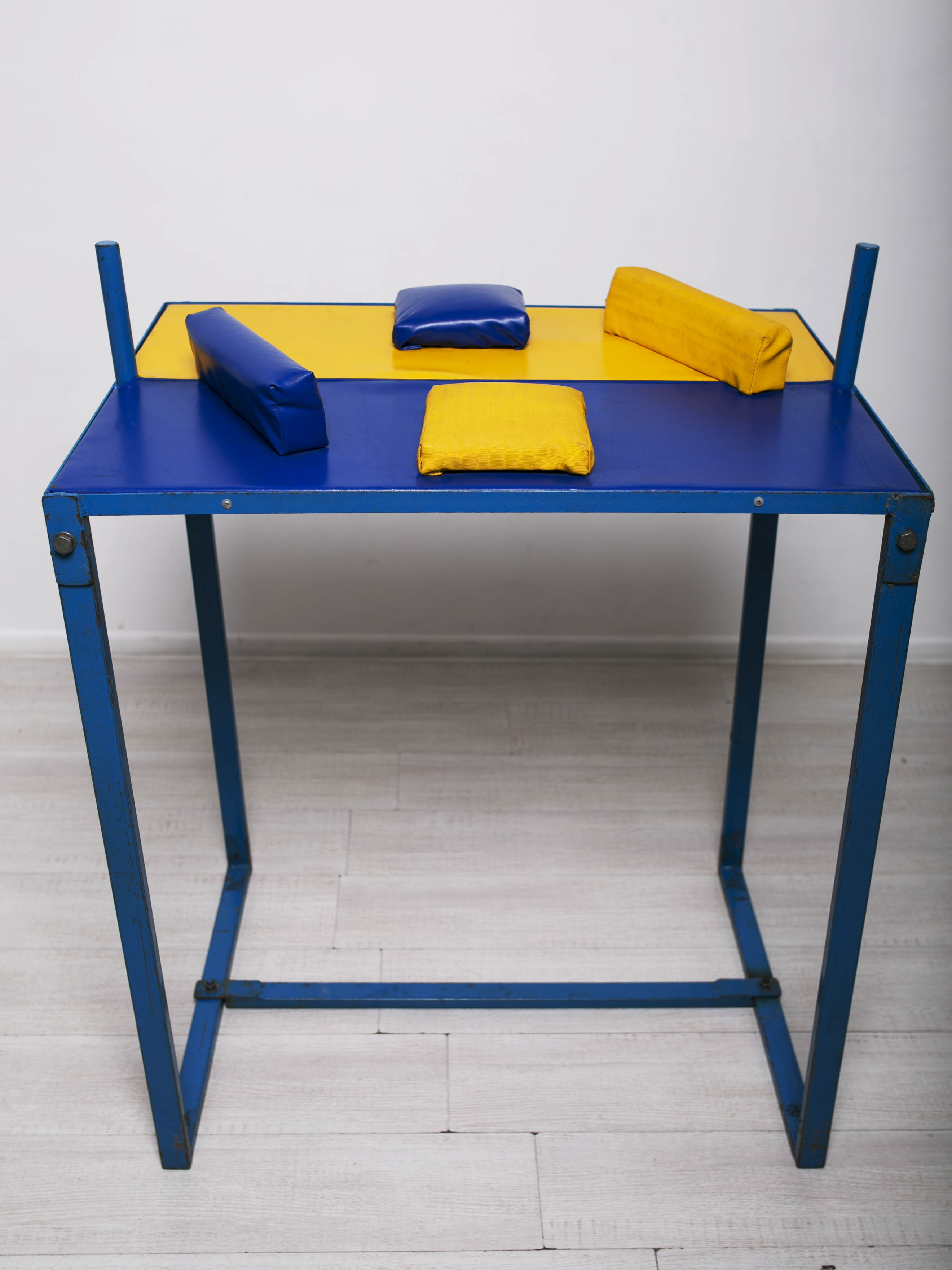 Стол для армрестлинга. Стальной сварной легкособираемый каркас, крышка из водостойкой фанеры, рабочая поверхность – армированный ПВХ с подложкой из пенополиэтилена.